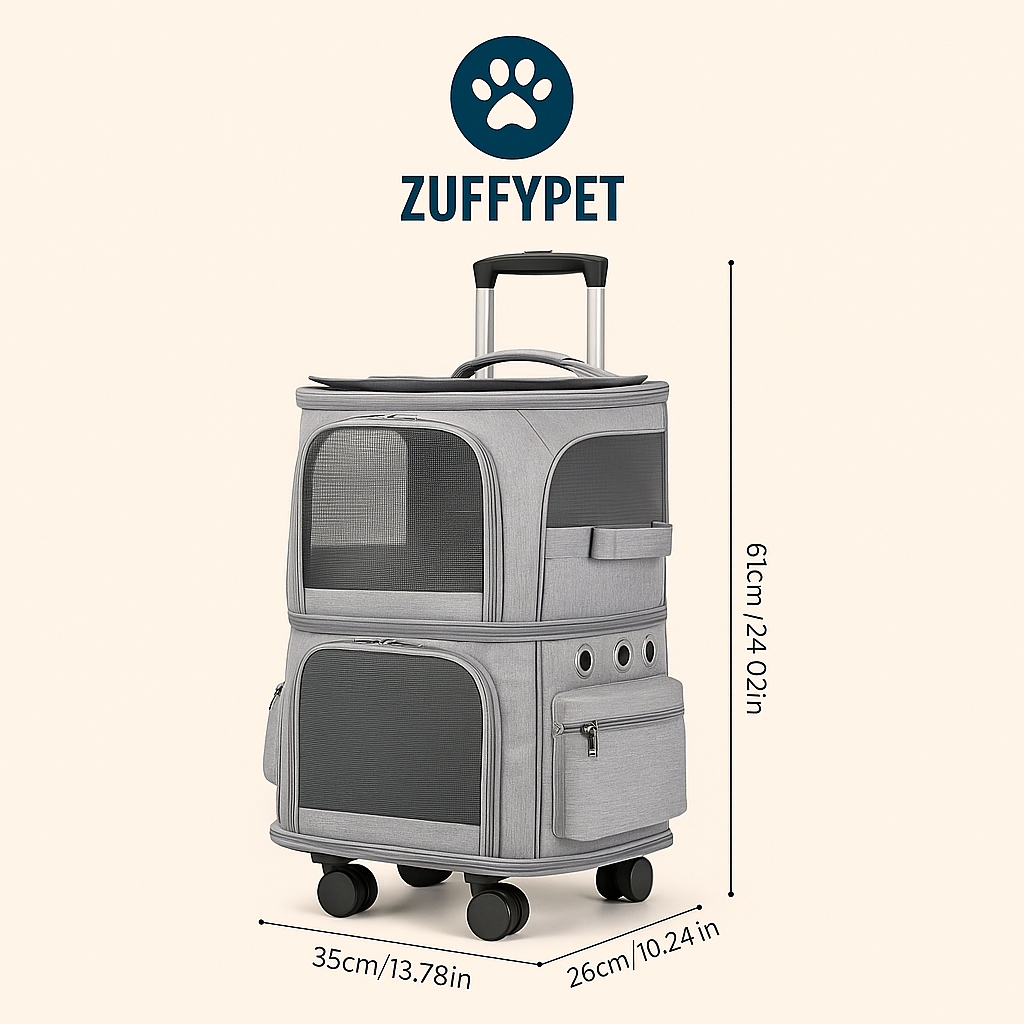 Meet Zuffy’s 2-in-1 Pet Travel Carrier, the ultimate travel solution for cat and dog lovers. Designed for maximum comfort, style, and convenience — this innovative carrier easily transforms from a rolling trolley into a wearable backpack, making every journey stress-free for you and your furry friends.