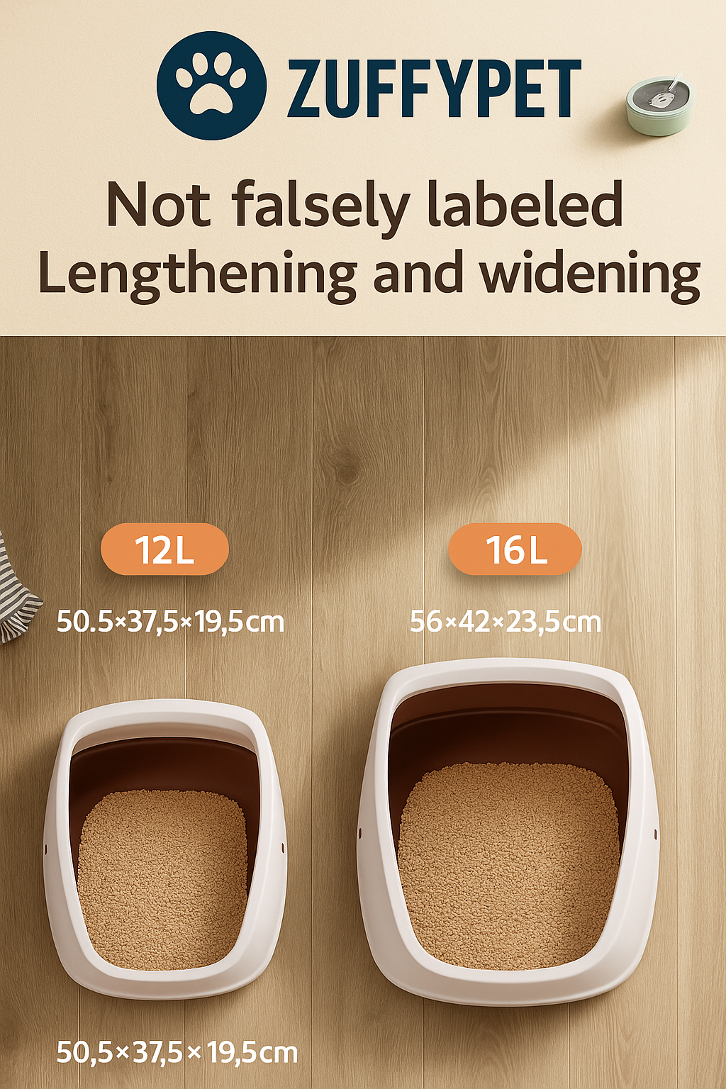 Keep your home clean and your cat happy with the ZUFFYPET Cat Litterbox — a large, semi-enclosed litter pan designed to reduce mess and provide comfort. Its high walls prevent litter scatter, while the deep base keeps everything contained. Made from durable, easy-to-clean materials, this litter box combines practicality with a modern look that fits any home.